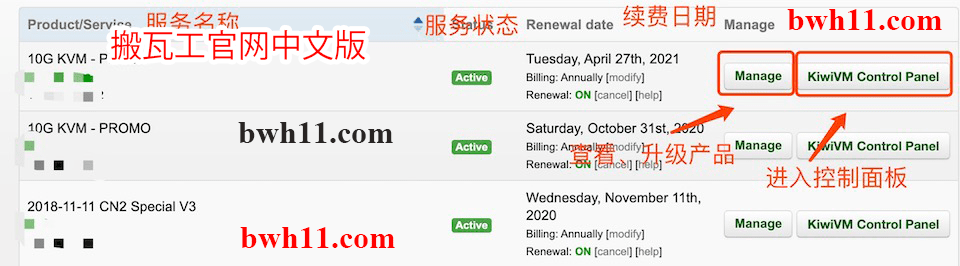 如果你想查看目前所有已购买的服务,请登录搬瓦工官网: